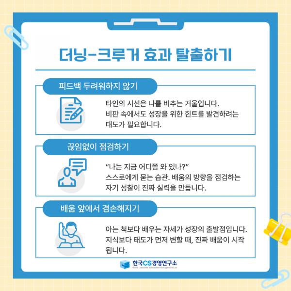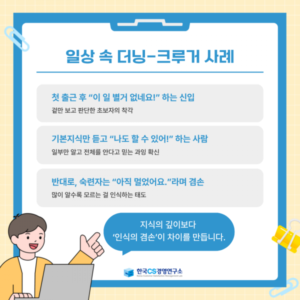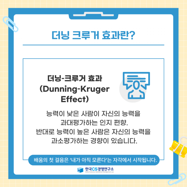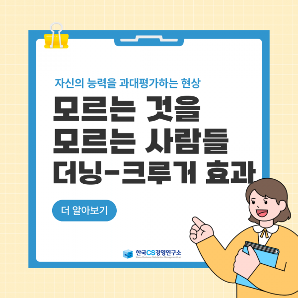 [한국CS경영연구소] 모르는 것을 모르는 사람들 '더닝-크루거 효과' 페이지 정보 작성자 최고관리자 작성일 25-10-10 13:35 조회 76회 댓글 0건 본문 목록 댓글목록 0 댓글목록 등록된 댓글이 없습니다.