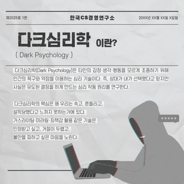 [한국CS경영연구소] 누군가 나를 조종한다고? '다크 심리학'