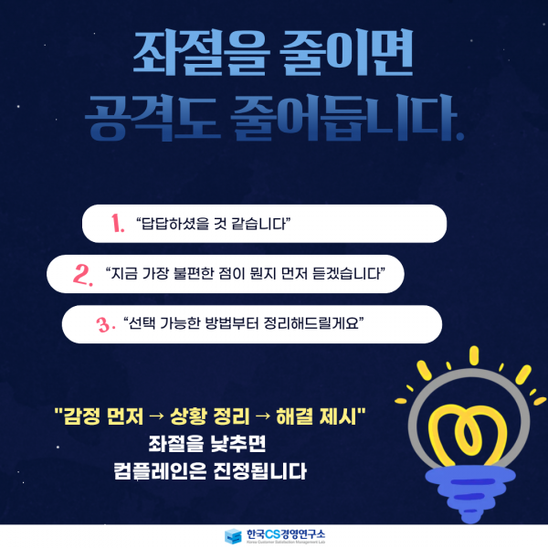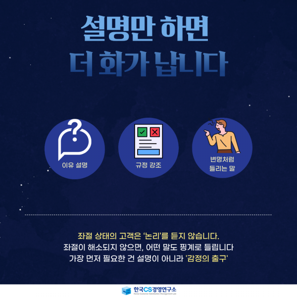 좌절된 고객에게 설명과 규정을 먼저 말할수록 분노는 더욱 커집니다.