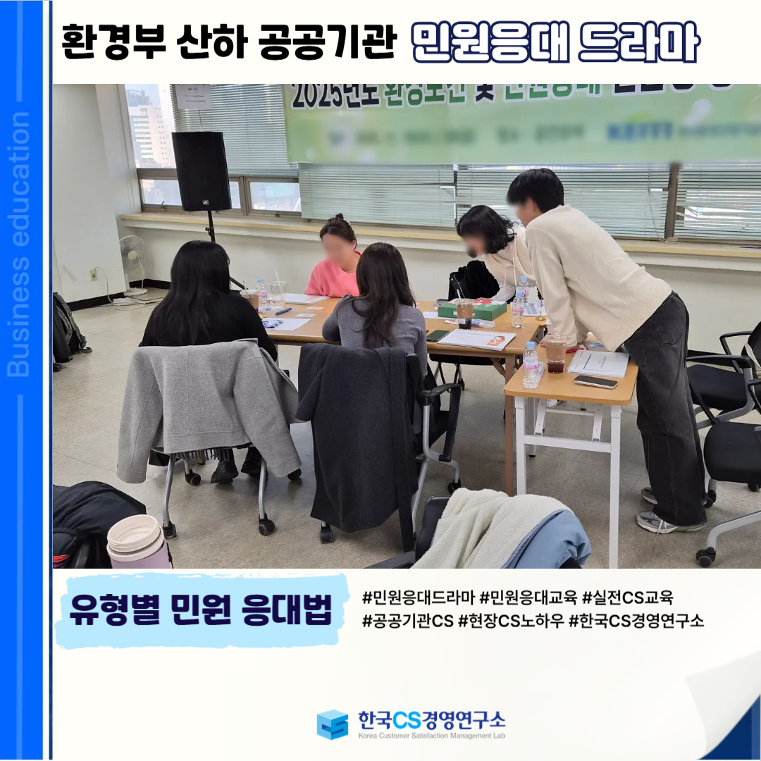 <환경부 산하 공공기관>에서 직원들이 민원응대 현장에서 보다 슬기롭고 유연하게 대처할 수 있도록 CS 현장 맞춤 ‘민원응대 드라마’ 프로그램을 진행했습니다.