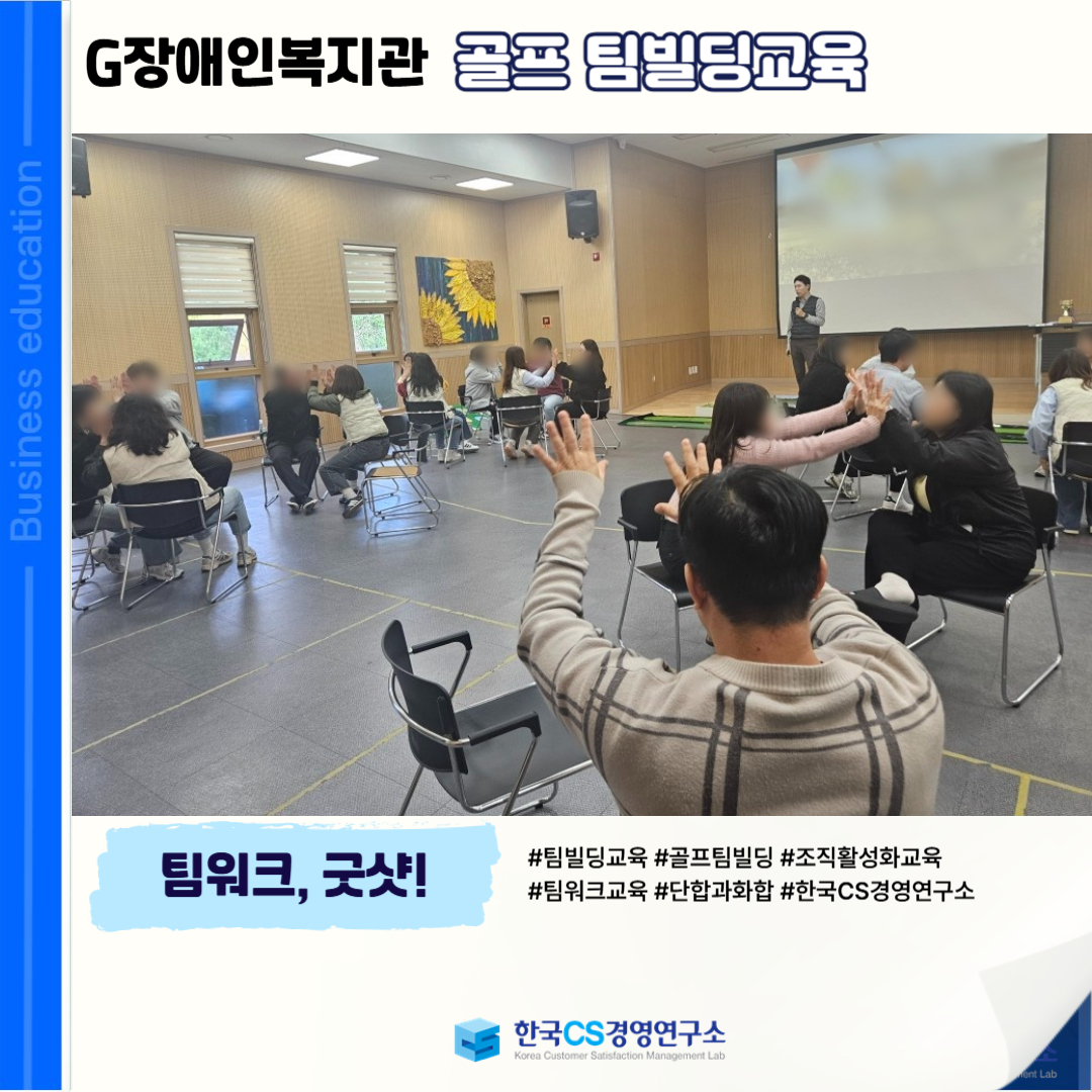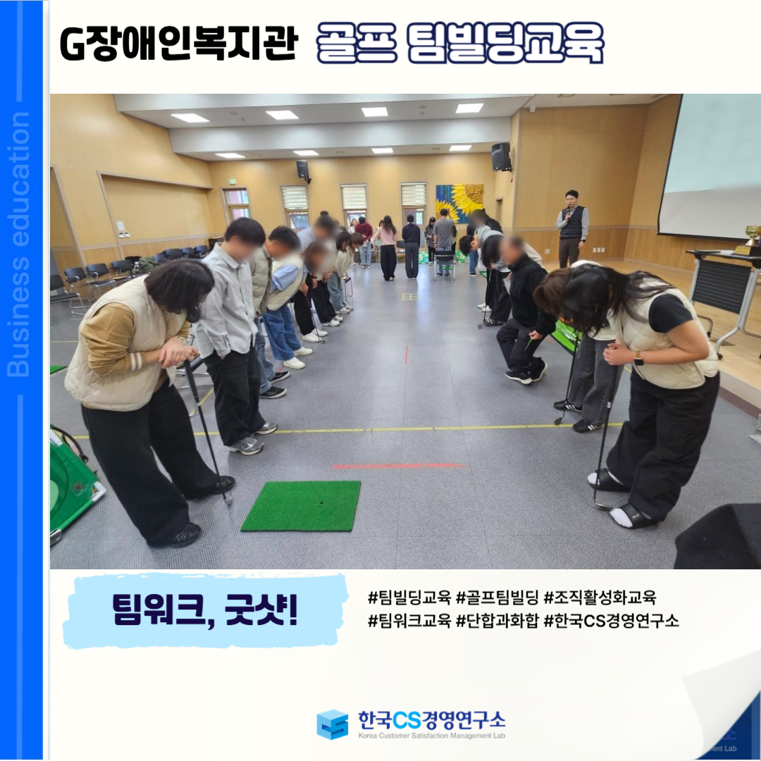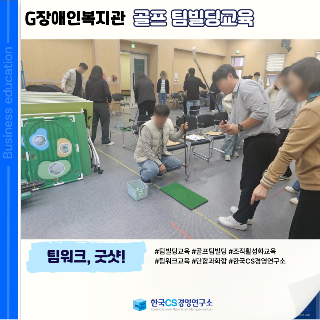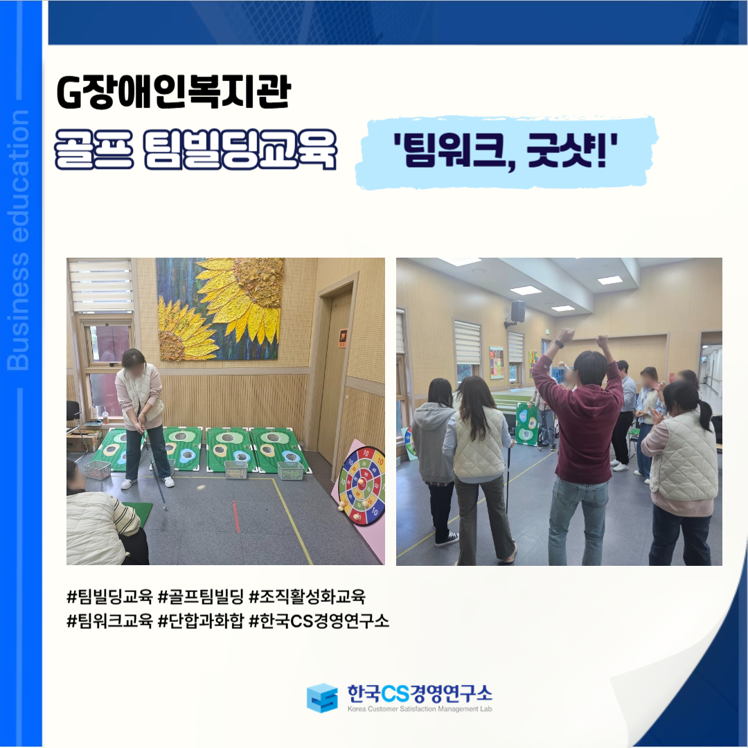 <G장애인복지관>에서 골프를 통해 즐겁게 팀워크를 다지고, 화합과 소통을 강화하기 위해 ‘골프 팀빌딩교육’ 교육을 진행했습니다.