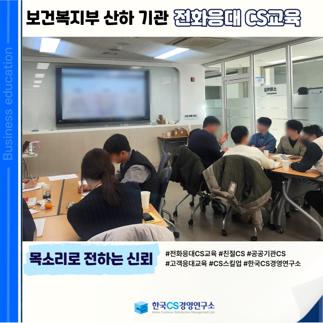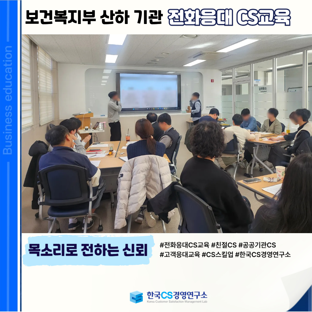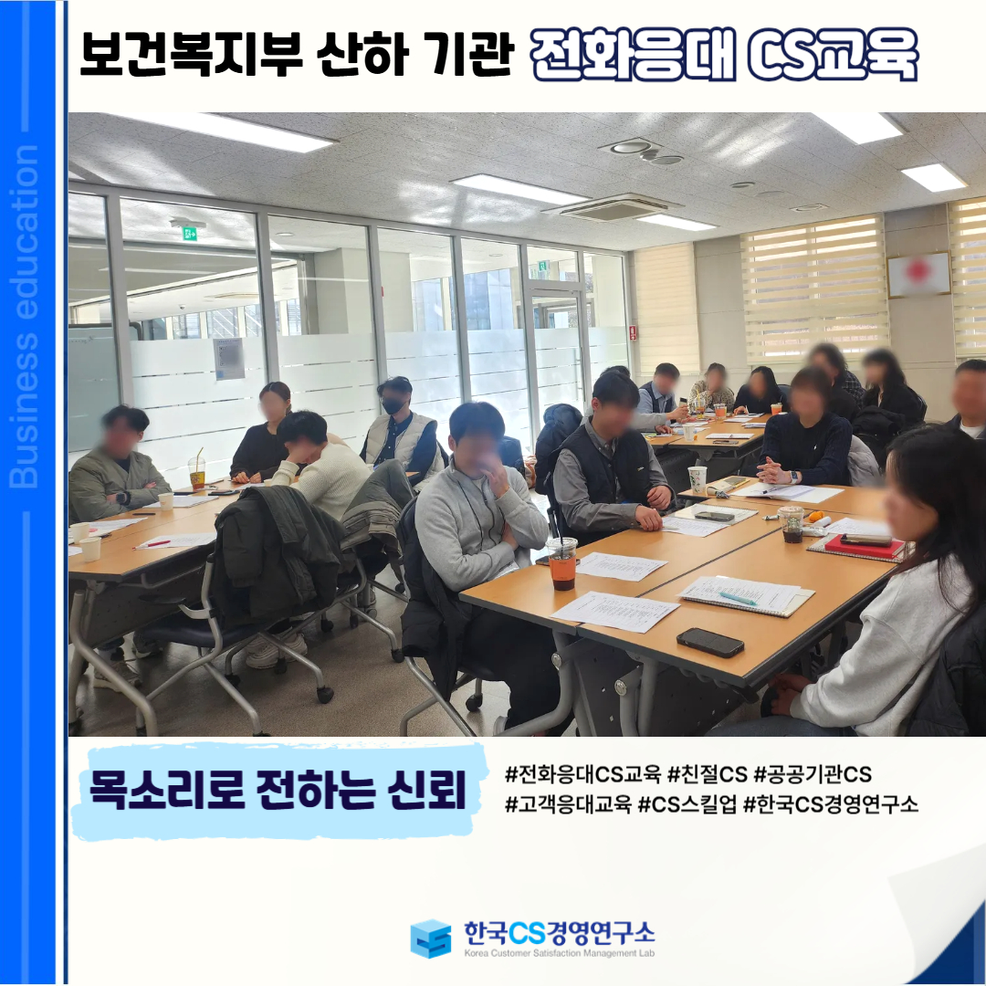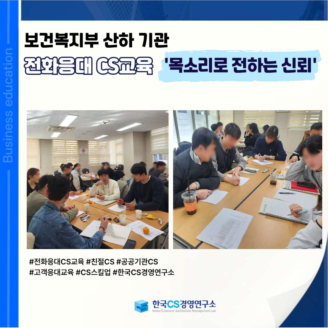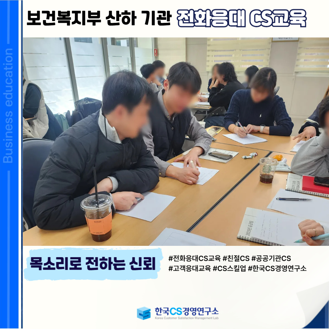 <보건복지부 산하 기관>에서 친절과 공감을 바탕으로 한 전화응대 역량을 강화하고, 민원 응대 서비스의 신뢰도와 품질 향상을 위해 ‘전화응대 CS교육’을 진행했습니다.