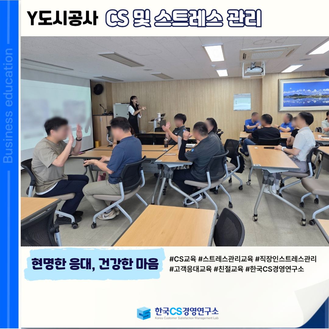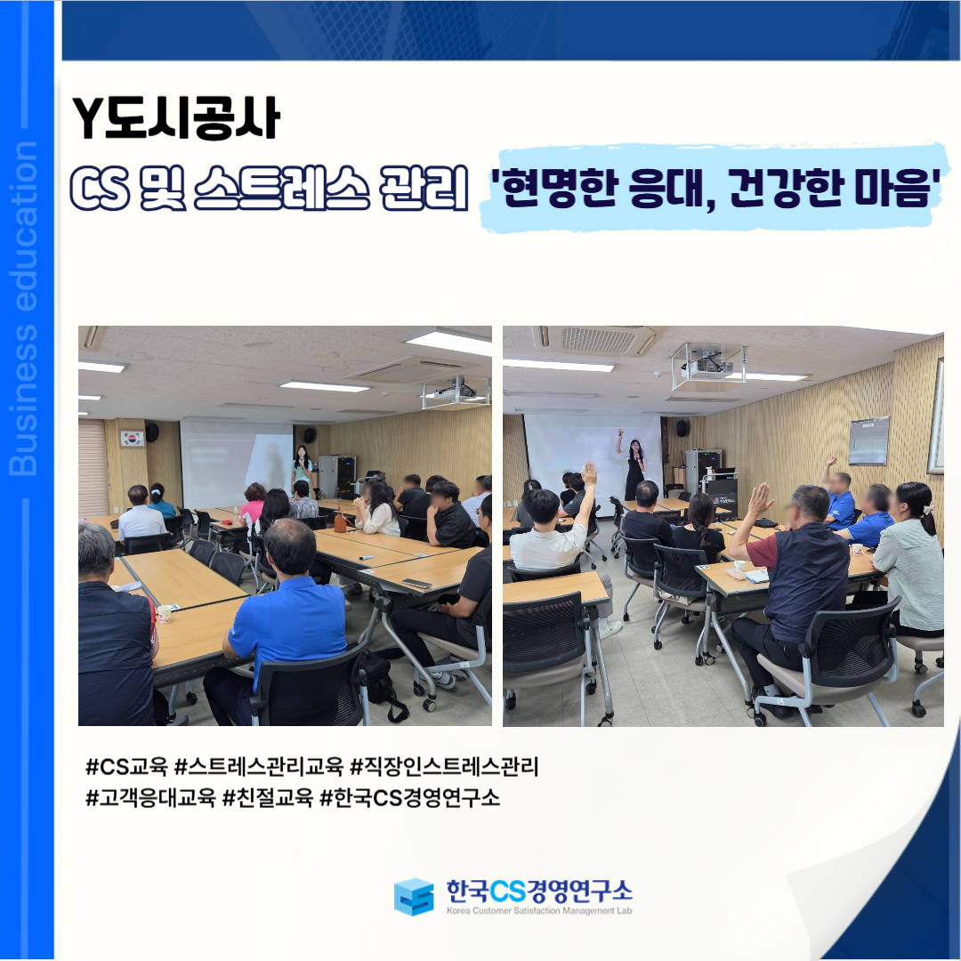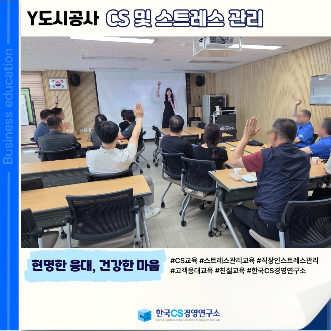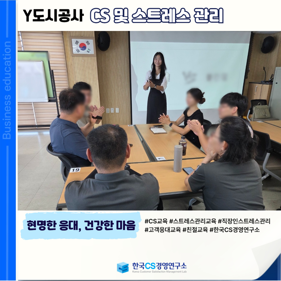 <Y도시공사>에서 '현명한 응대'와 '건강한 마음'을 위한 CS 및 스트레스 관리 교육을 진행했습니다!