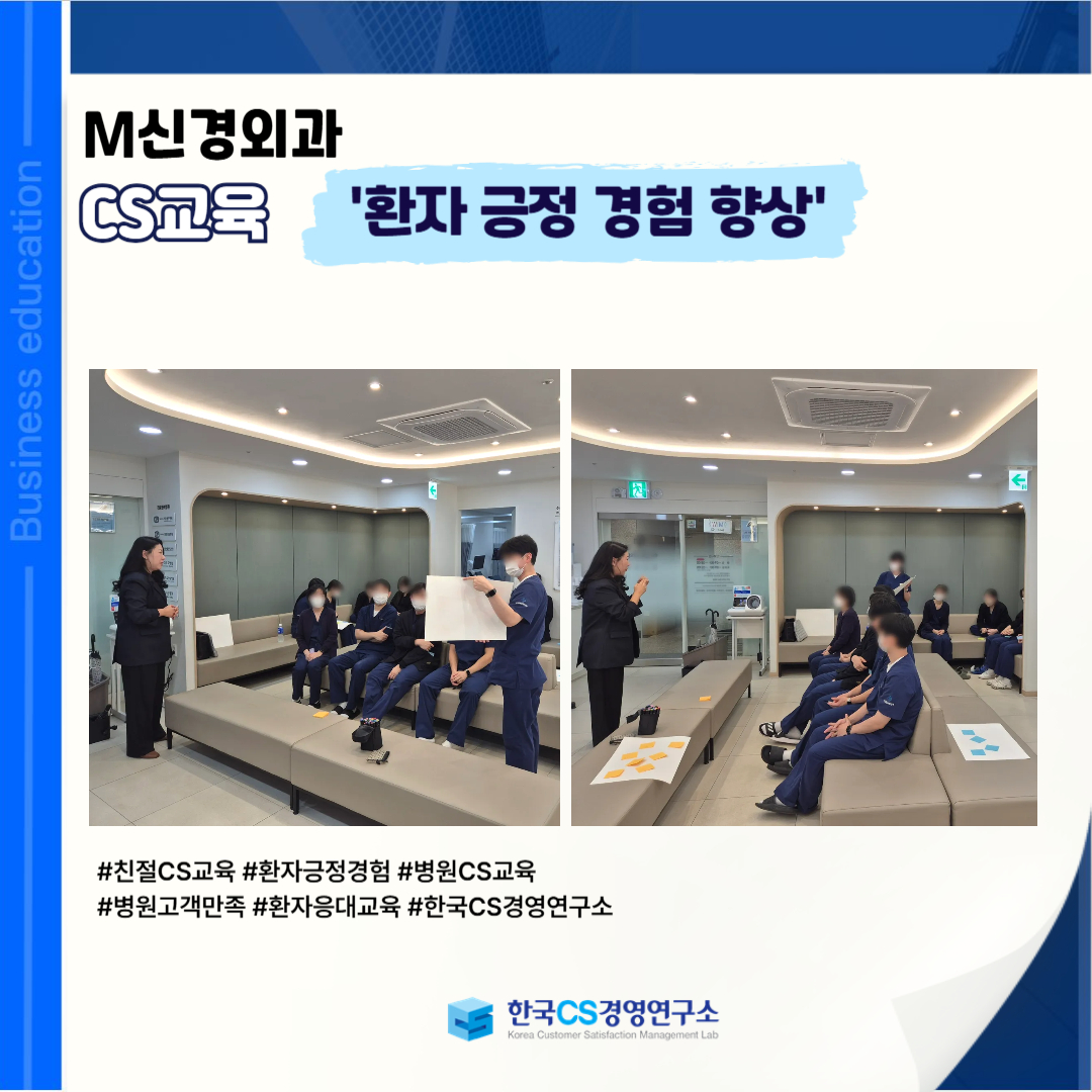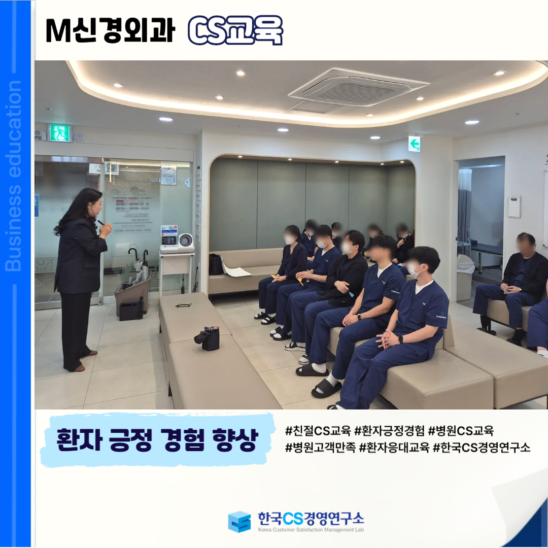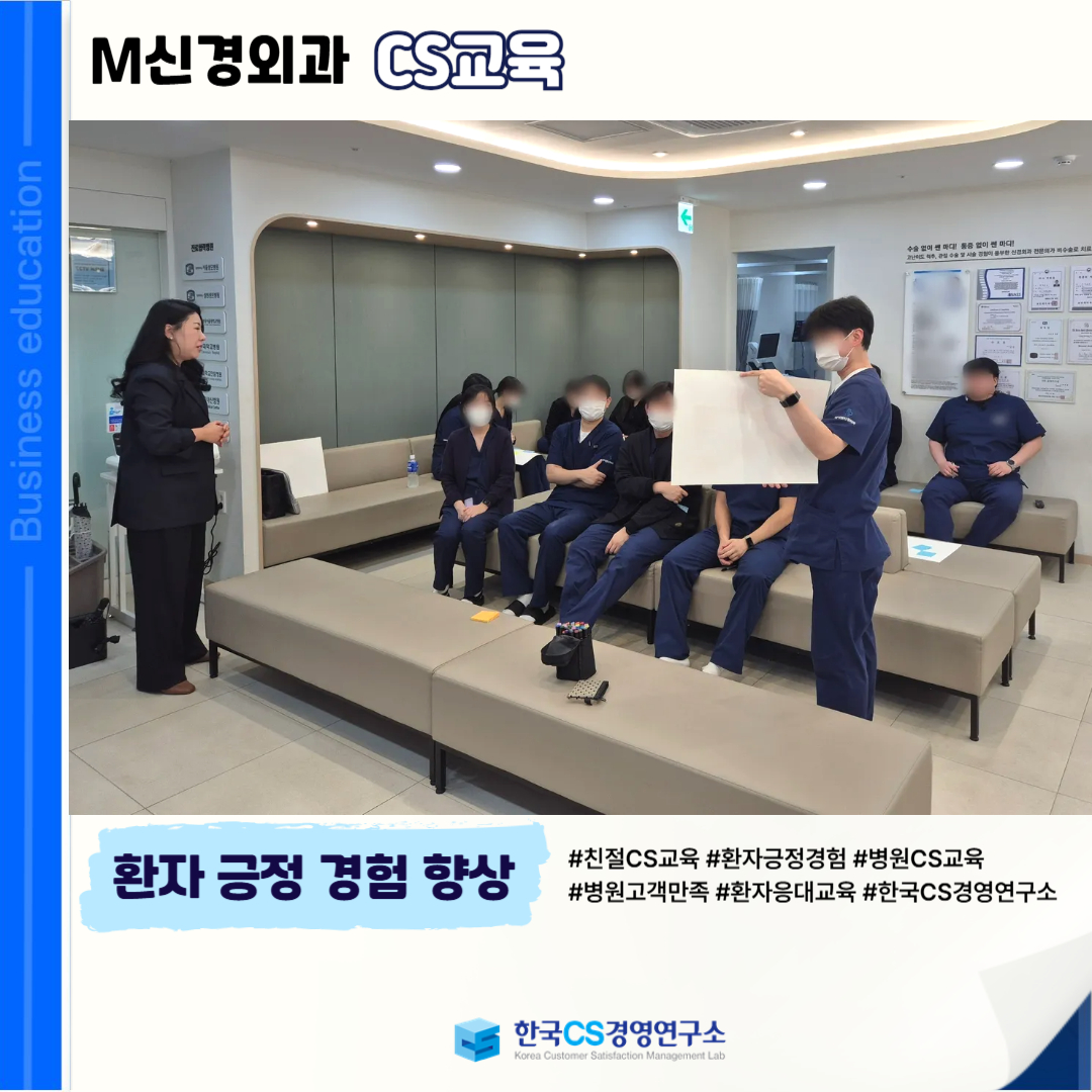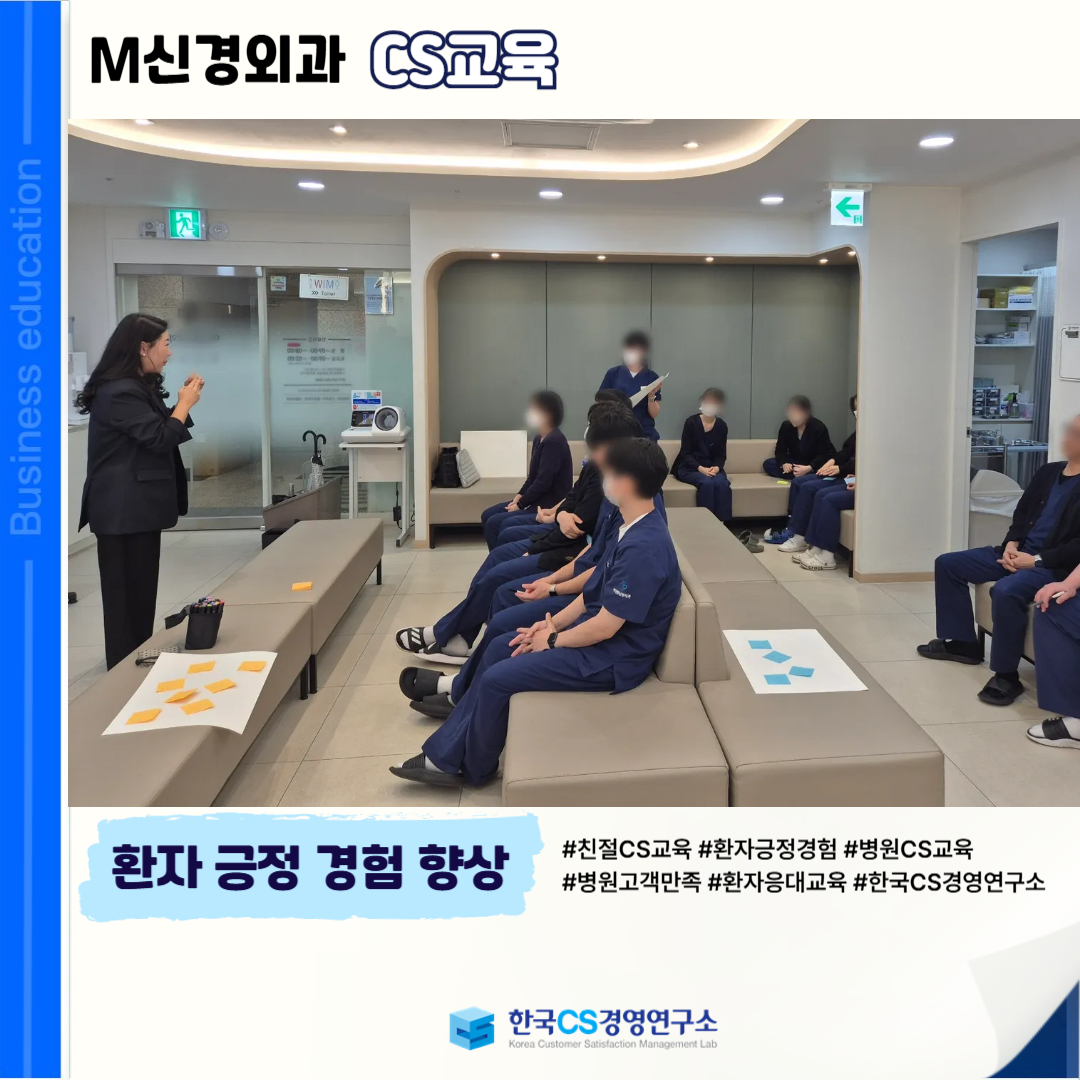 <M신경외과>에서 환자 접점 전반의 서비스 품질을 강화하고 긍정적인 의료 경험을 제공하기 위한 '병원 CS교육'을 진행했습니다.