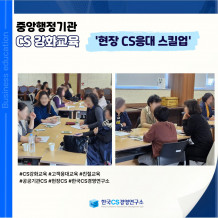 기업들의 옳은 선택이 될 수 있는 교육 가치 기반으로 기업 HRD&CS Total 분야의 대표 수행기관으로서 한국CS경영연구소는 개인과 기업의 성장에 함께하겠습니다.