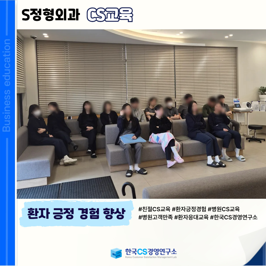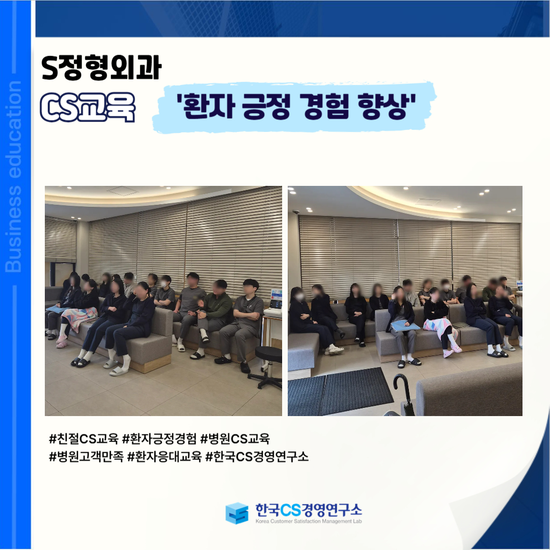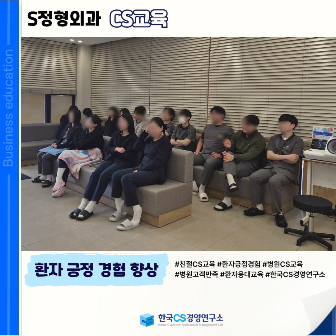 <S정형외과>에서 환자 접점 전반의 서비스 품질을 강화하고 긍정적인 의료 경험을 제공하기 위한 '병원 CS교육'을 진행했습니다.