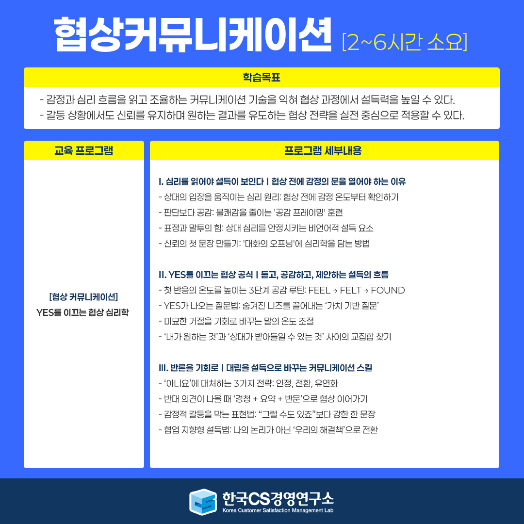 [협상커뮤니케이션] 감정 읽기부터 제안까지, 신뢰를 쌓는 협상전략_한국CS경영연구소