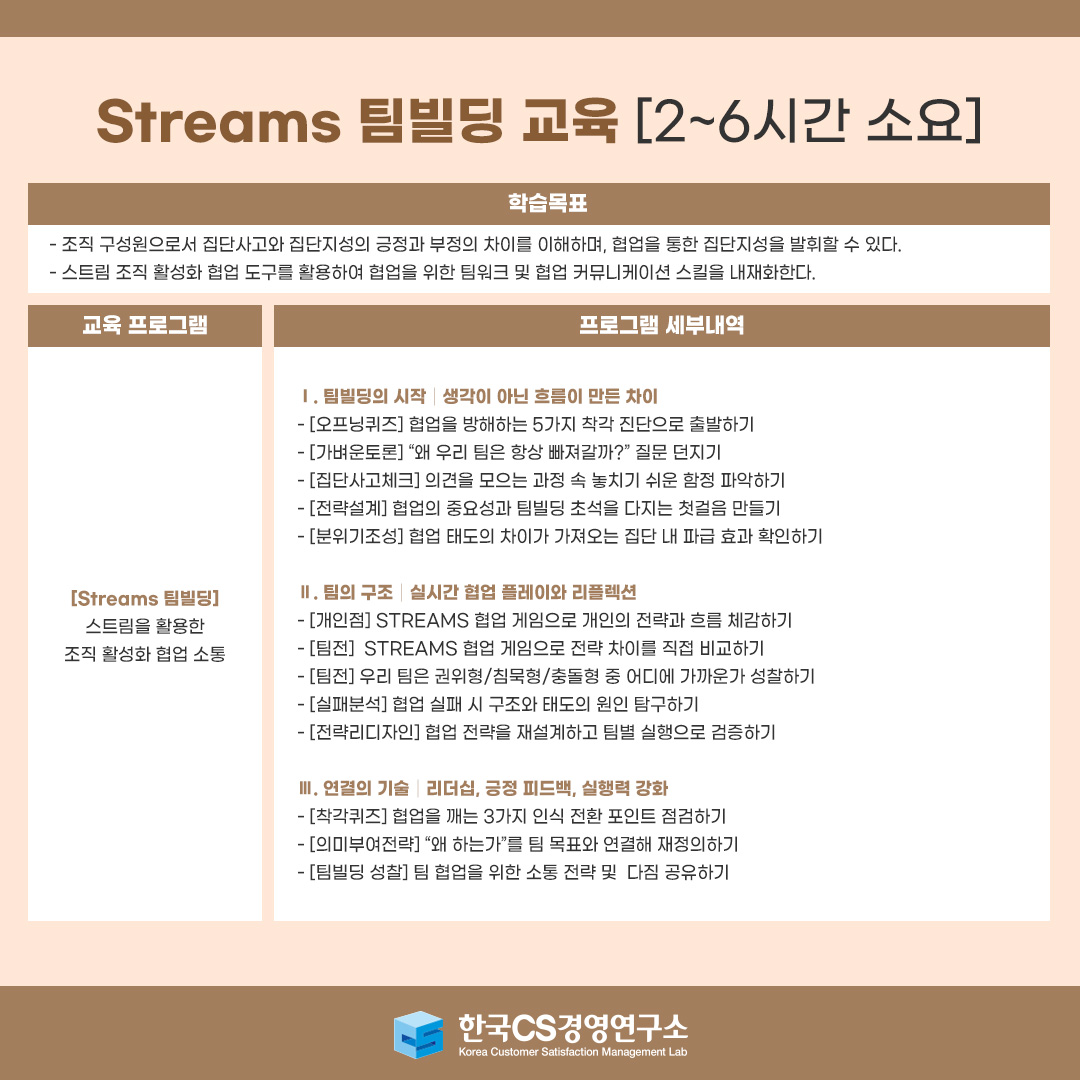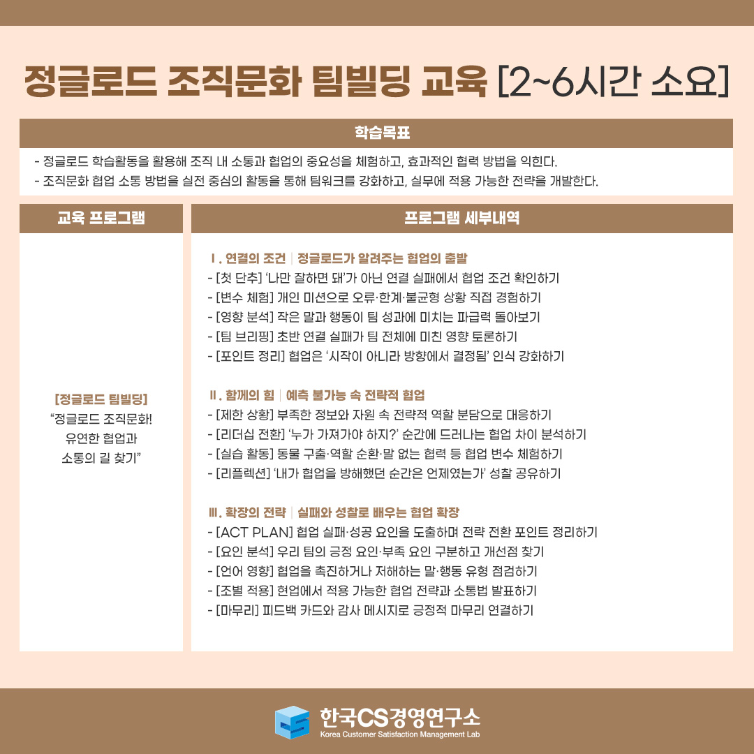 [팀빌딩프로그램] 조직활성화를 이끄는 실전 팀워크 워크숍_한국CS경영연구소