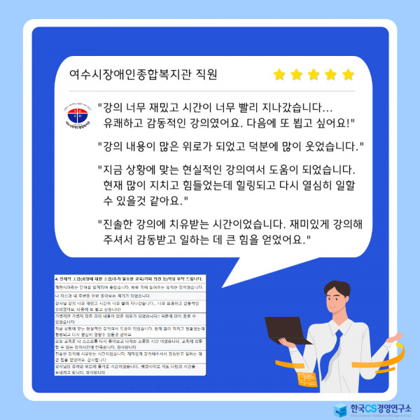 여수시장애인종합복지관과 한국CS경영연구소가 소중한 인연을 맺었습니다.
