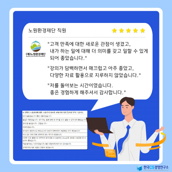 "고객 만족에 대한 새로운 관점이 생겼고, 내가 하는 일에 대해 더 의미를 갖고 일할 수 있게 되어 좋았습니다."