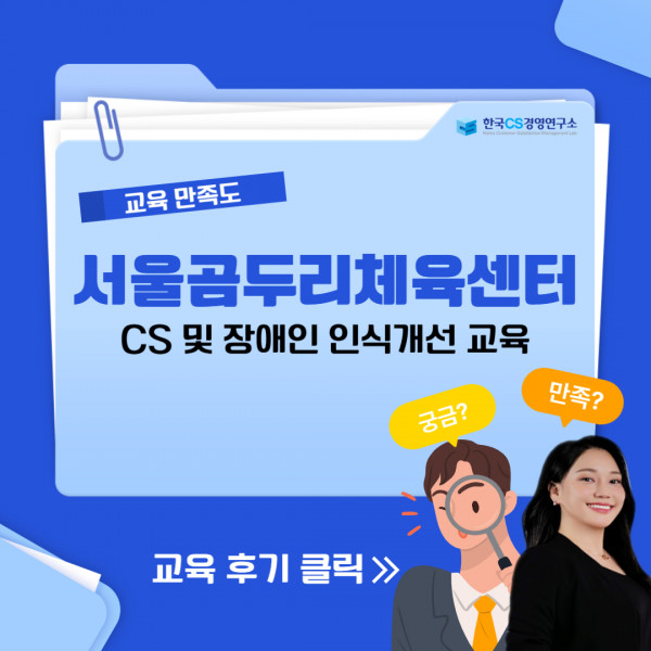 서울곰두리체육센터에서 직원들의 고객 응대 역량을 강화하고, 장애인에 대한 이해를 높이며 보다 전문적인 서비스를 제공할 수 있도록 'CS 및 장애인 인식개선 교육’을 의뢰해 주셨으며, 양지혜 강사님이 출강하였습니다.