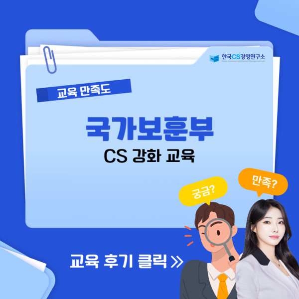 기업들의 옳은 선택이 될 수 있는 교육 가치 기반으로 기업 HRD&CS Total 분야의 대표 수행기관으로서 한국CS경영연구소는 개인과 기업의 성장에 함께하겠습니다.