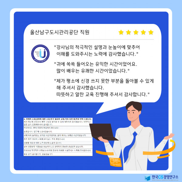 울산남구도시관리공단과 한국CS경영연구소가 소중한 인연을 맺었습니다.