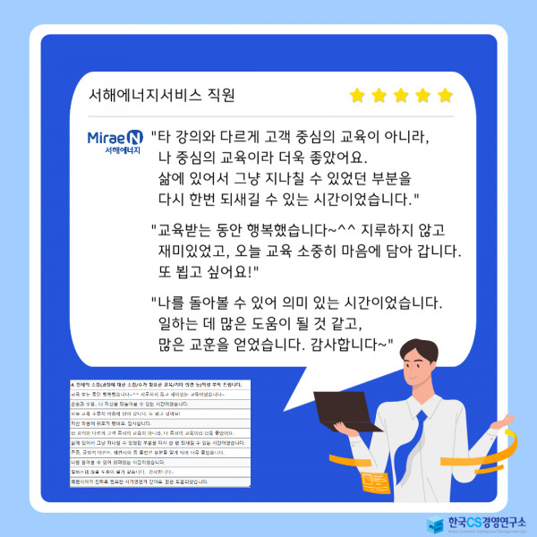 서해에너지서비스와 한국CS경영연구소가 소중한 인연을 이어갑니다.