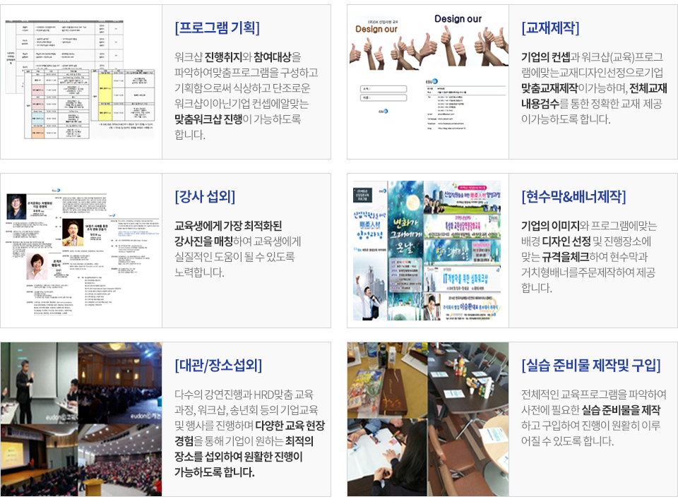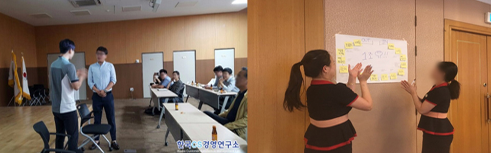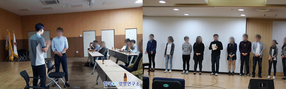 - 고객응대 MOT (고객맞이~끝 인사)까지 직원들의 말투 및 친절 행동 실습 - 전화응대 전화상담/ 방문상담 MOT(Moment Of Truth)응대 직원들의 말투 및 친절행동 - 친근감과 신뢰감을 주는 직원들의 행동과 언어 대기~배웅까지 접점 별 친절 수준 UP - ‘방문 – 대기 - 고객응대– 마무리’ 각 접점 별 디테일 멘트 및 서비스 프로세스 이해/실습 - [실습] 배운 것을 활용하자! : 전화고객응대 상황극을 통한 전화응대 피드백 - 실제 자주 발생하는 전화응대 : Best call VS worst call 토론 및 상황극 연출 - 팀 별 가장 최선의 솔루션 선택하여 시나리오 만들기 및 역할 분담 상황극 R/P실습 |