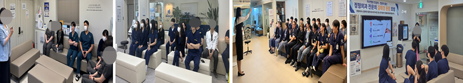 - ‘나’를 바꿀 수 있는 사람은 ‘나’ 자신밖에 없다! - TA 활용한 자주 발생하는 상황 연출 및 1:1 대인관계 및 고객 응대법 코칭 - PAC 모델의 이해와 서로 다른 직원들의 마음가짐의 태도 5가지 받아들이기 - 함께 멀리 가자! 즐거운 병원 조직문화를 위한 핵심가치 행동 실천법 공유 |